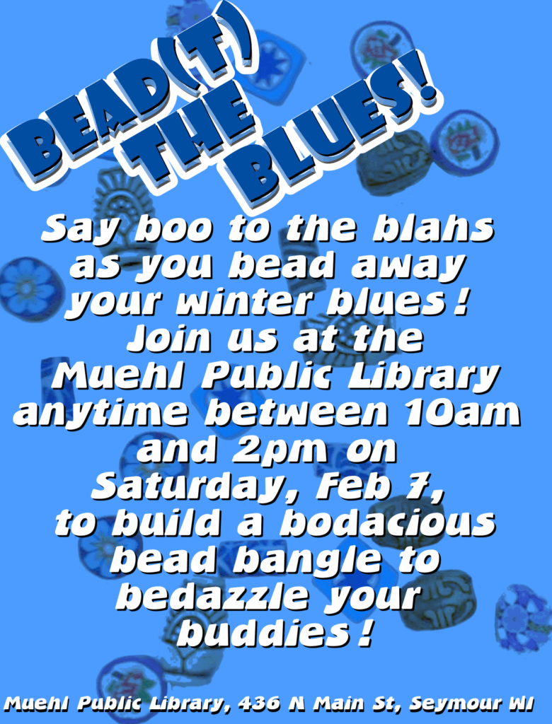 Bead(t) the Blues! etimmins All welcome, this is an all ages program. Materials are supplied. There is no cost. It is fun beading bracelets and necklaces! Bead(t) the Blues! Read More »